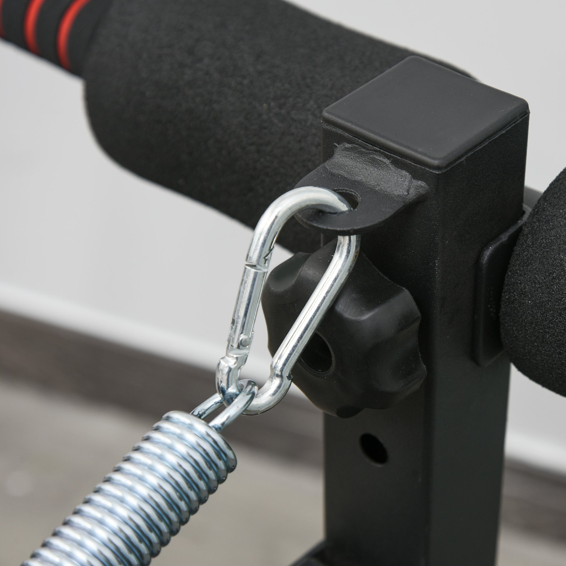 HOMCOM Sit Up Bench Core Workout Adjustable Thigh Support Foldable for Home Gym w/ Arm Pulling Rope Black
